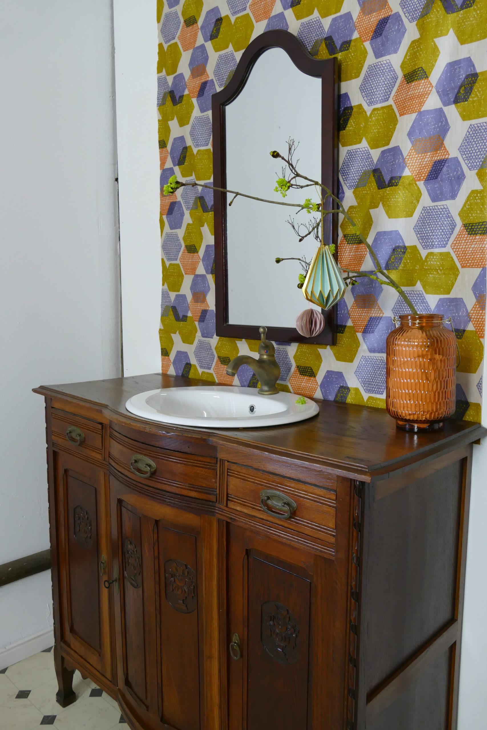 Veronique-badmoebel- jugendstil-Landhausstil Das Badmöbel im Jugendstil „Veronique“ ist aus Massivholz gefertigt und hat eine warme Holznote.